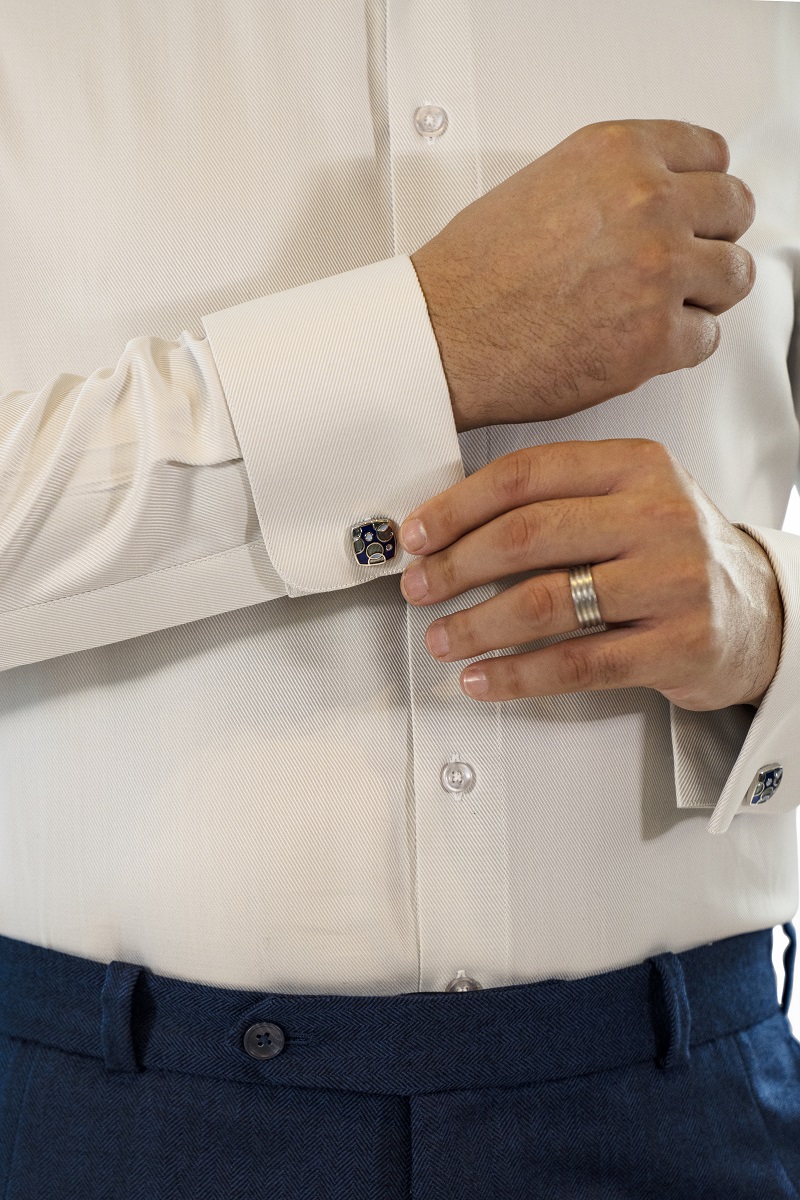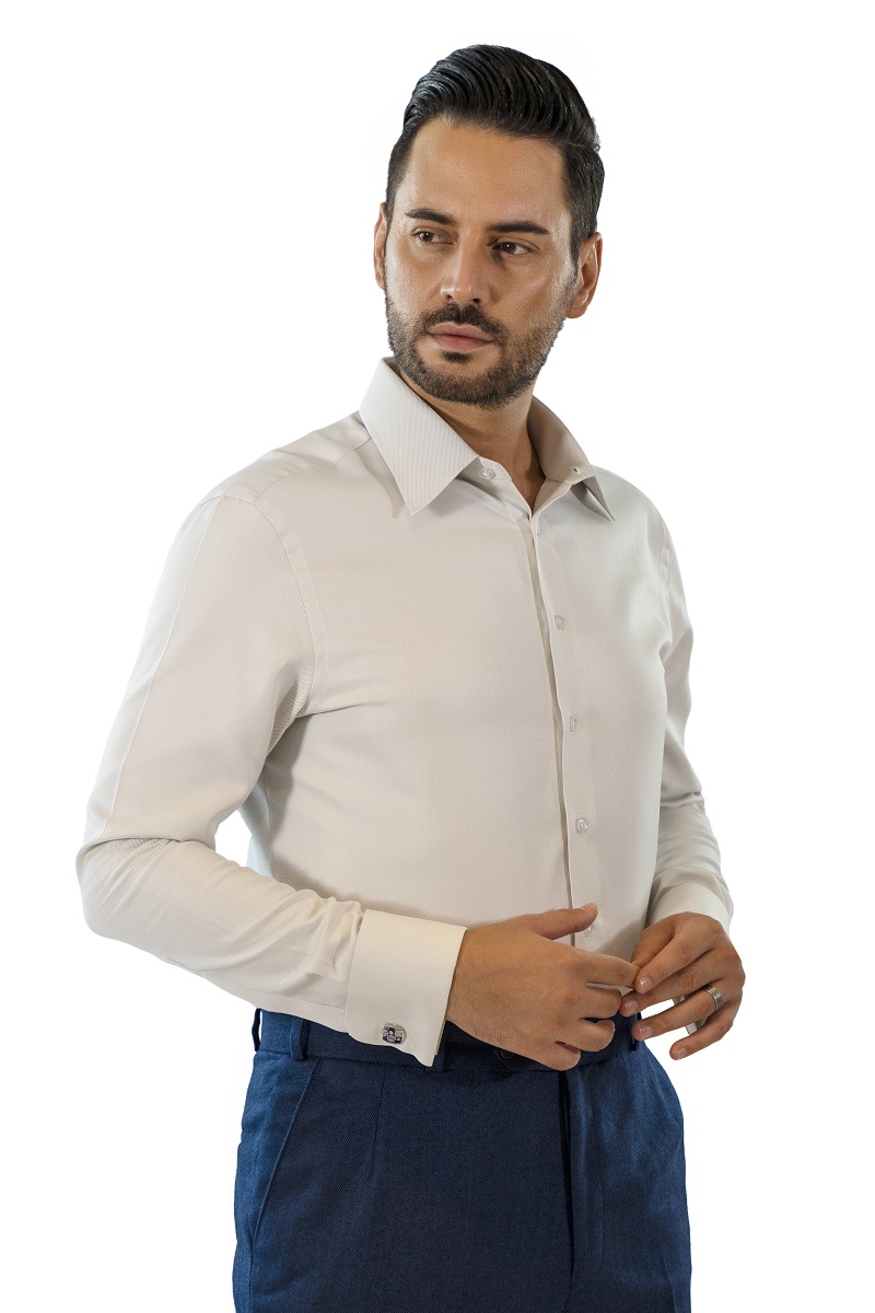 This sharp button-up shirt is tailored slim to fit, in breathable organic Indian cotton. It features a classic collar and a double cuff