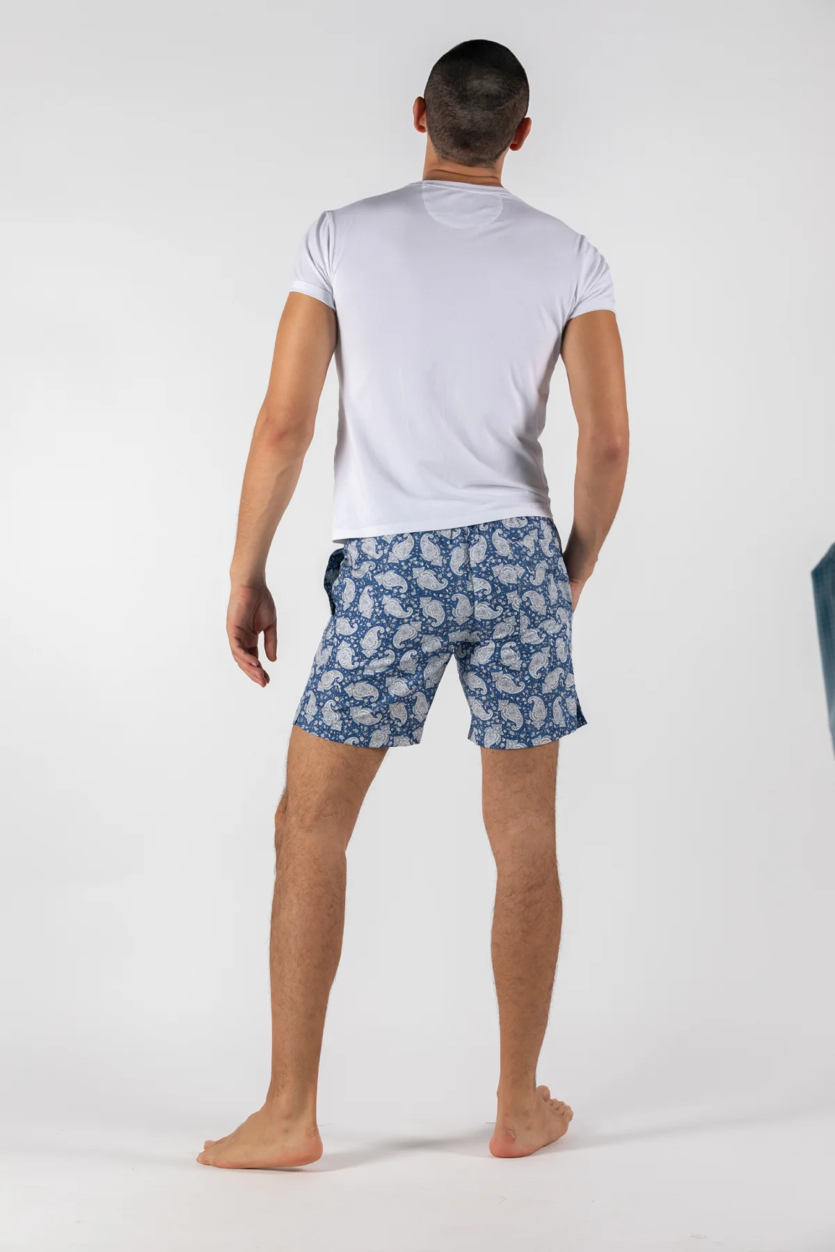 Modern fit, in natural breathable cotton, cut to hit at about mid-thigh. with a sporty drawstring waist. ideal to wear to the beach, or for a laid back afternoon