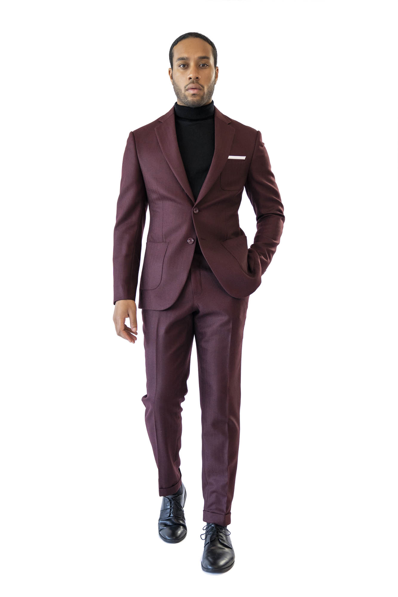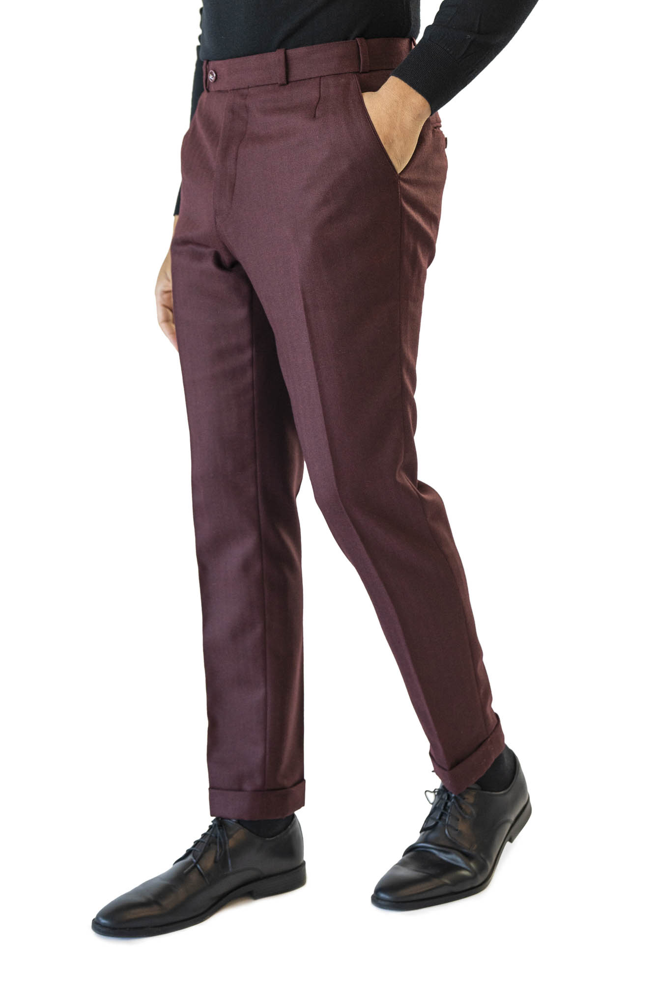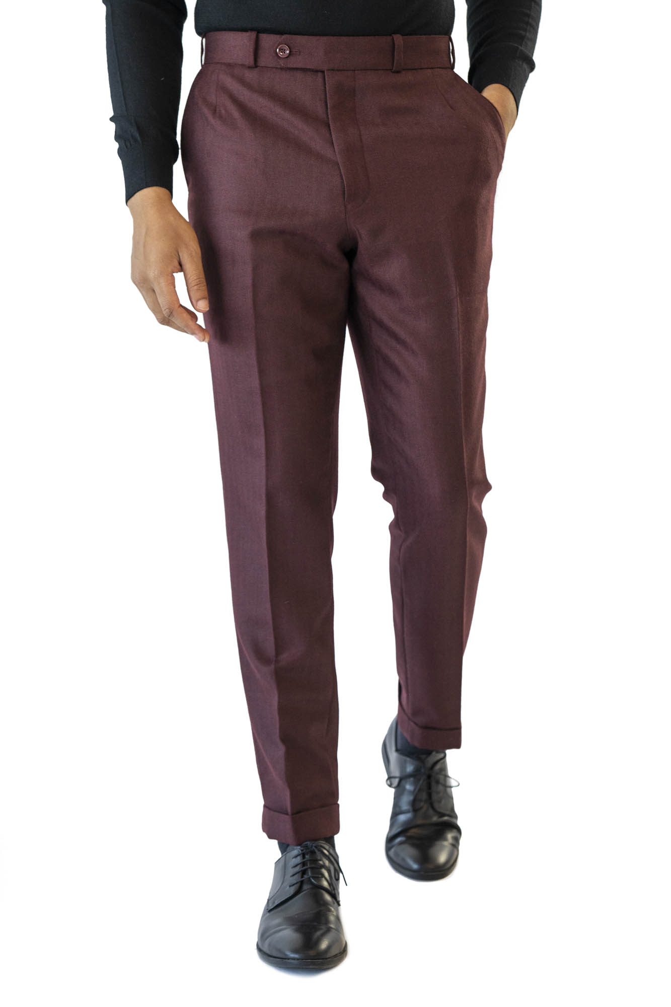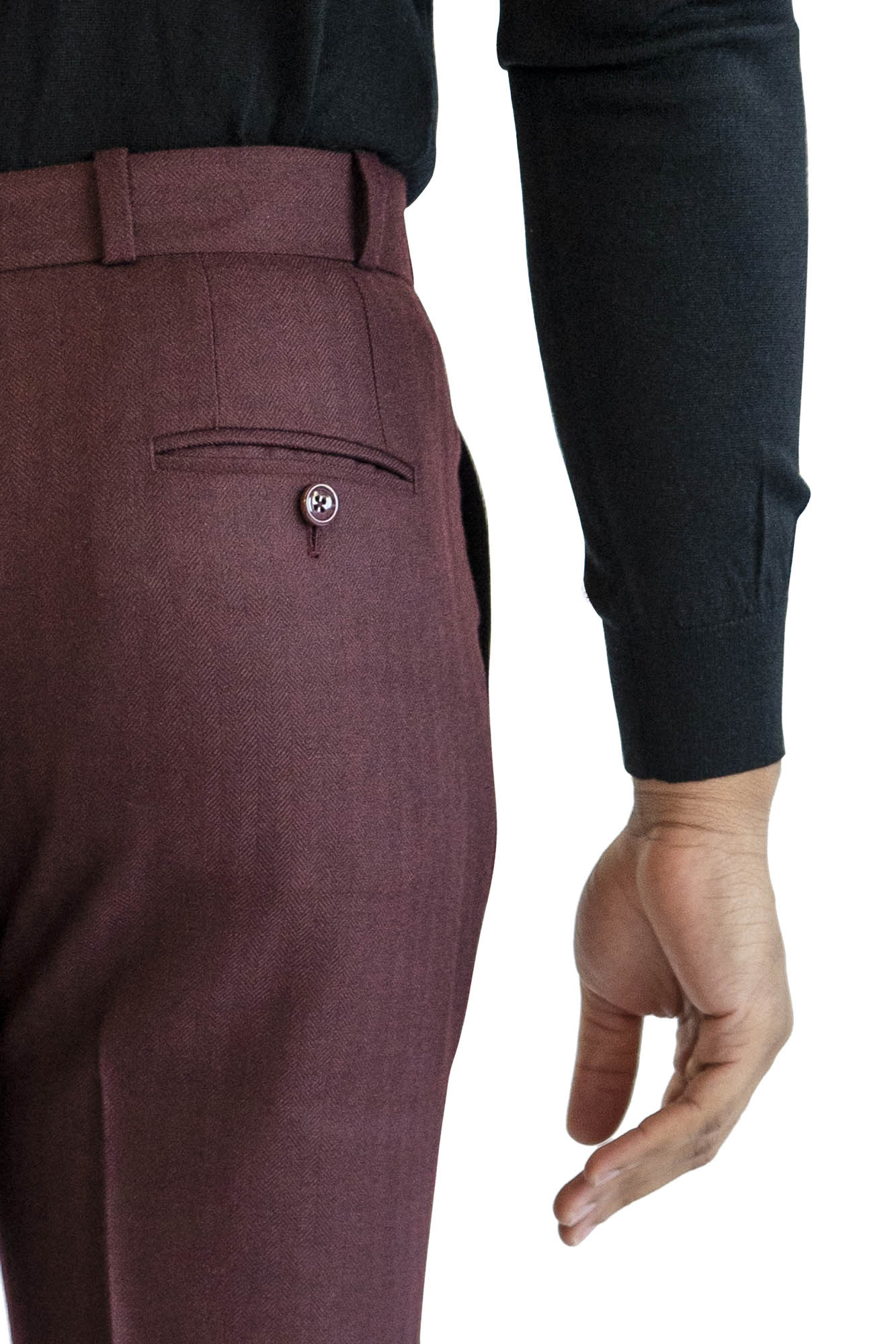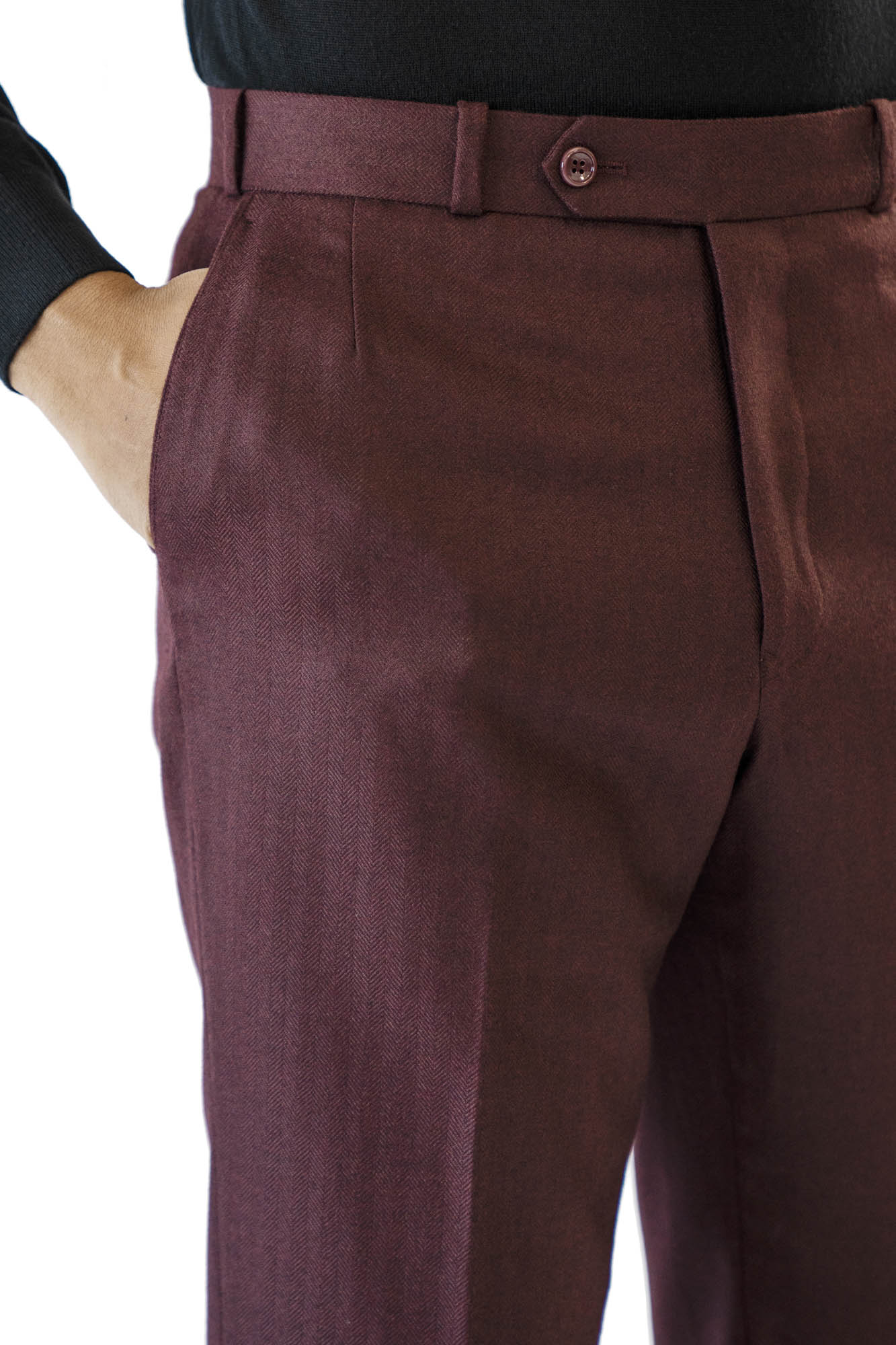 This handsome Maroon Flannel Jacket is perfect for the winter months. Tailored slim to fit, it features a turn up at the ankle. Cut from a pure wool and cashmere blend from the Liembrandt mill.