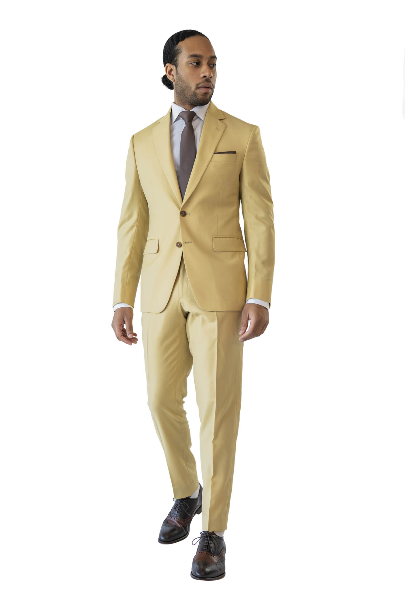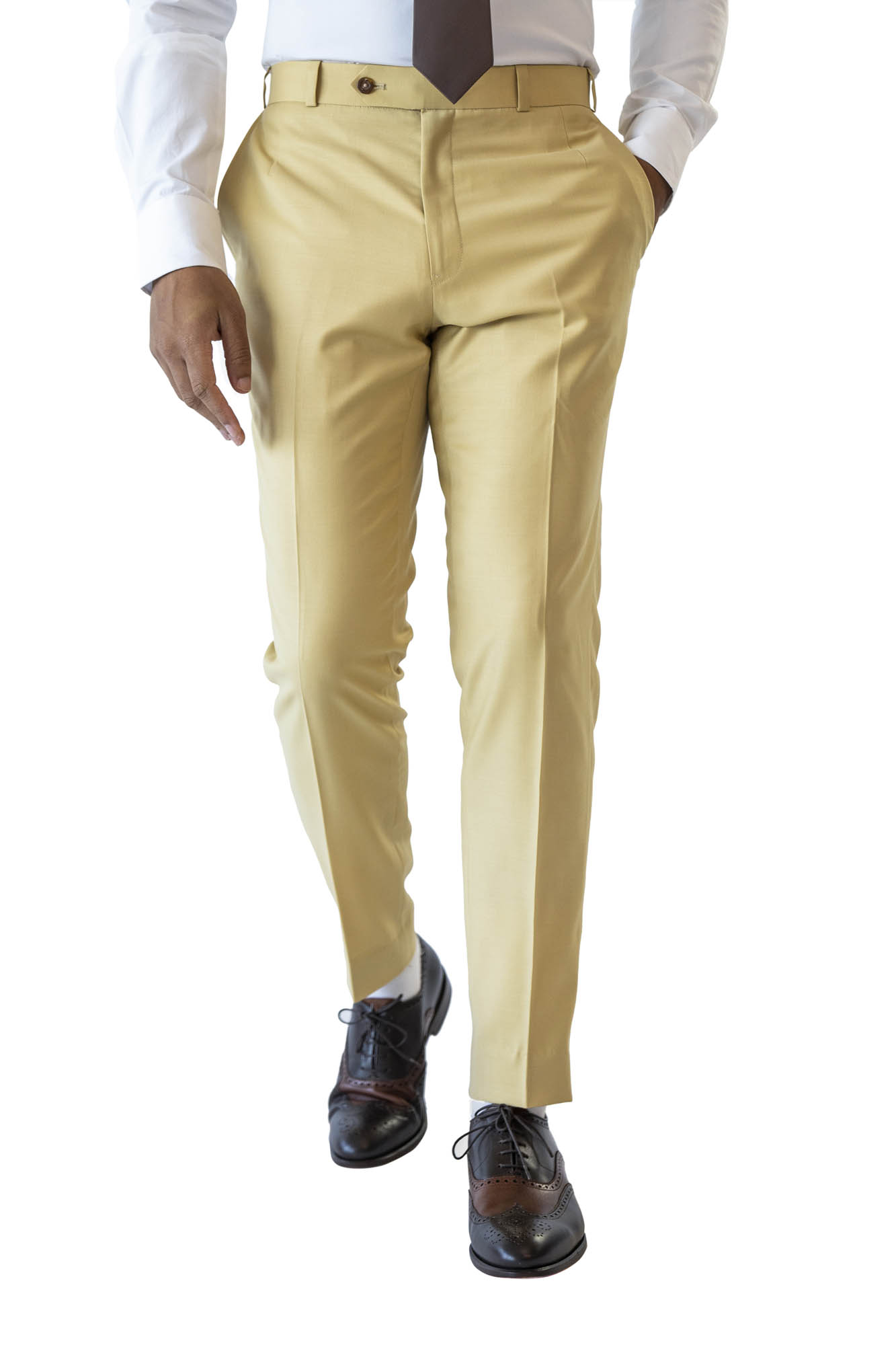 This sand color suit is crafted from pure Tropical Wool. Tailored for a well-defined fit, it features a flat front and classic belt loops for ultimate versatility.