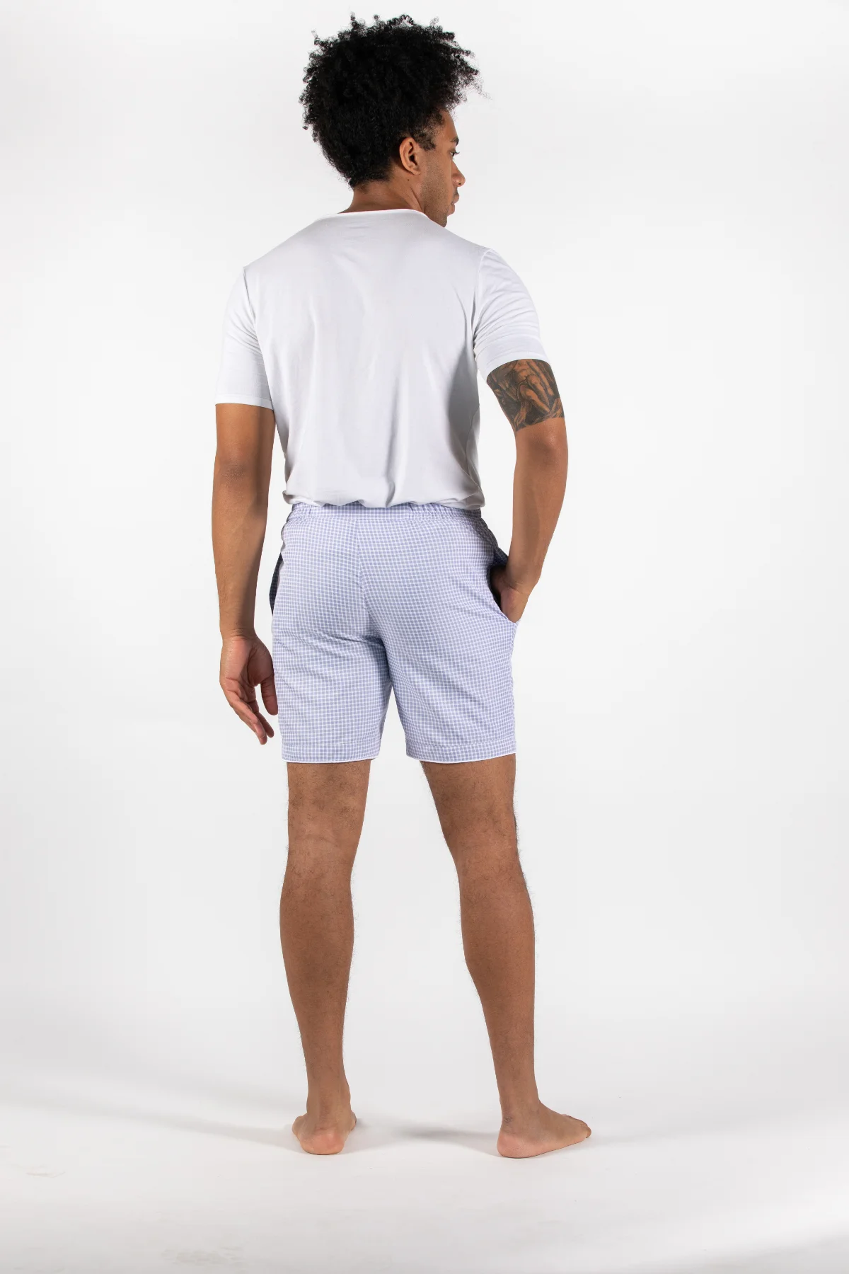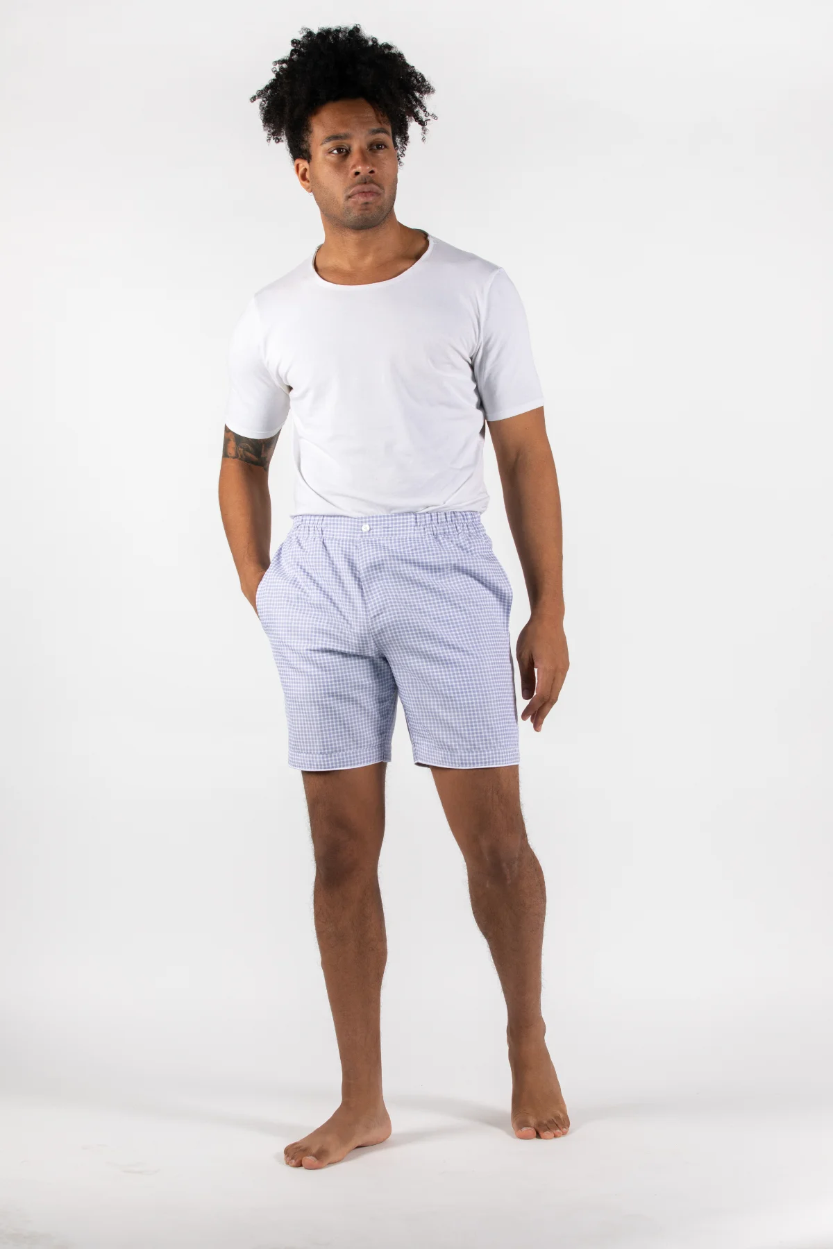 Our relaxed fit Shorts. designed for a streamlined look we replaced the drawcord with a two button waist band and elasticized sides to give you a modern and elegant look and feel