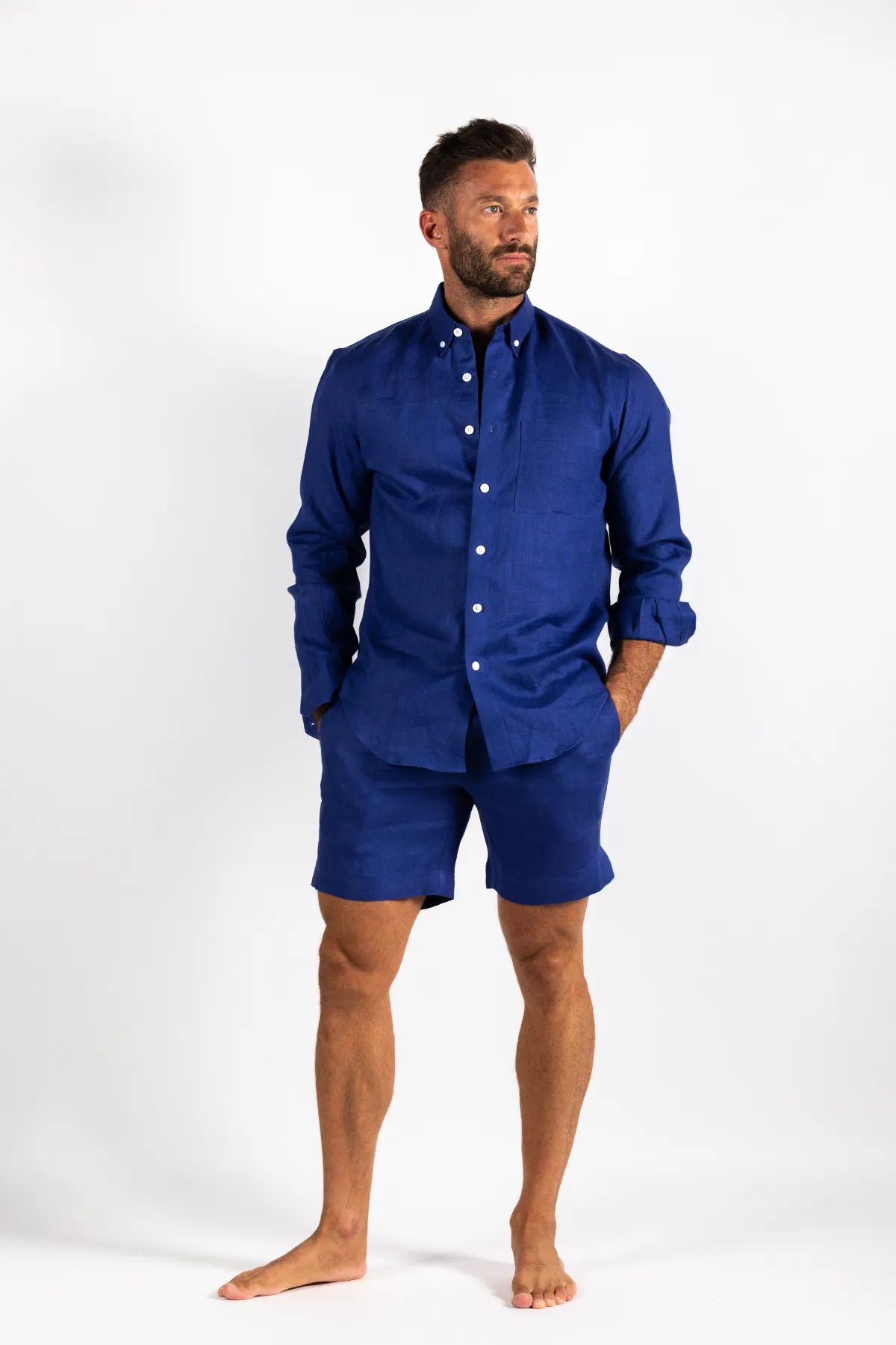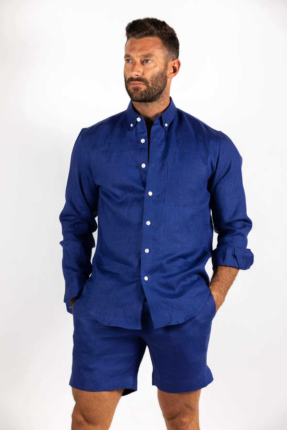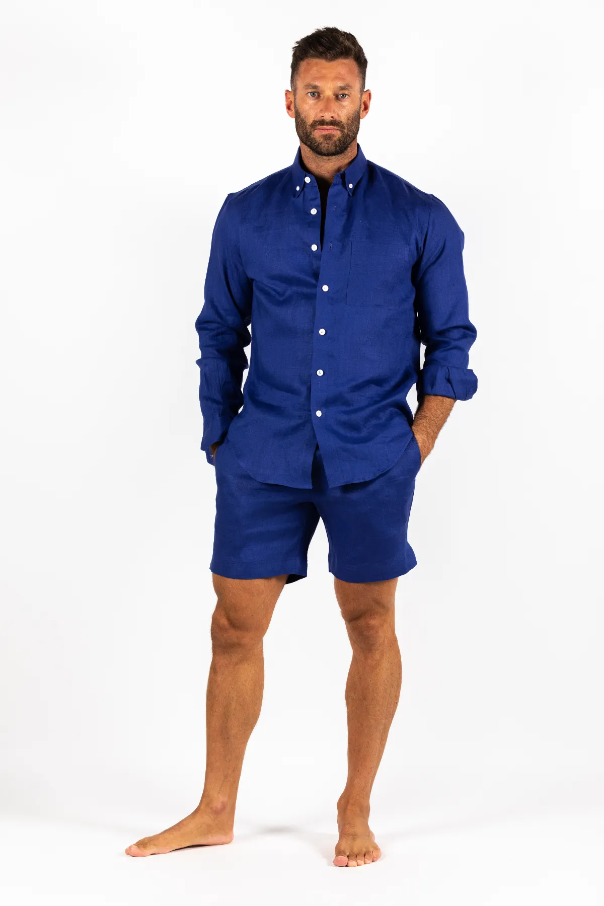 Roll up the cuffs and Pair it with our matching linen shorts or beachwear