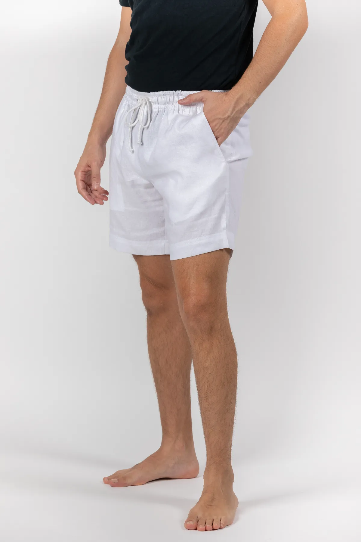 Shorts, 100% linen, Modern fit, elasticized drawstring, mid-rise style, side pockets, pre shrunk