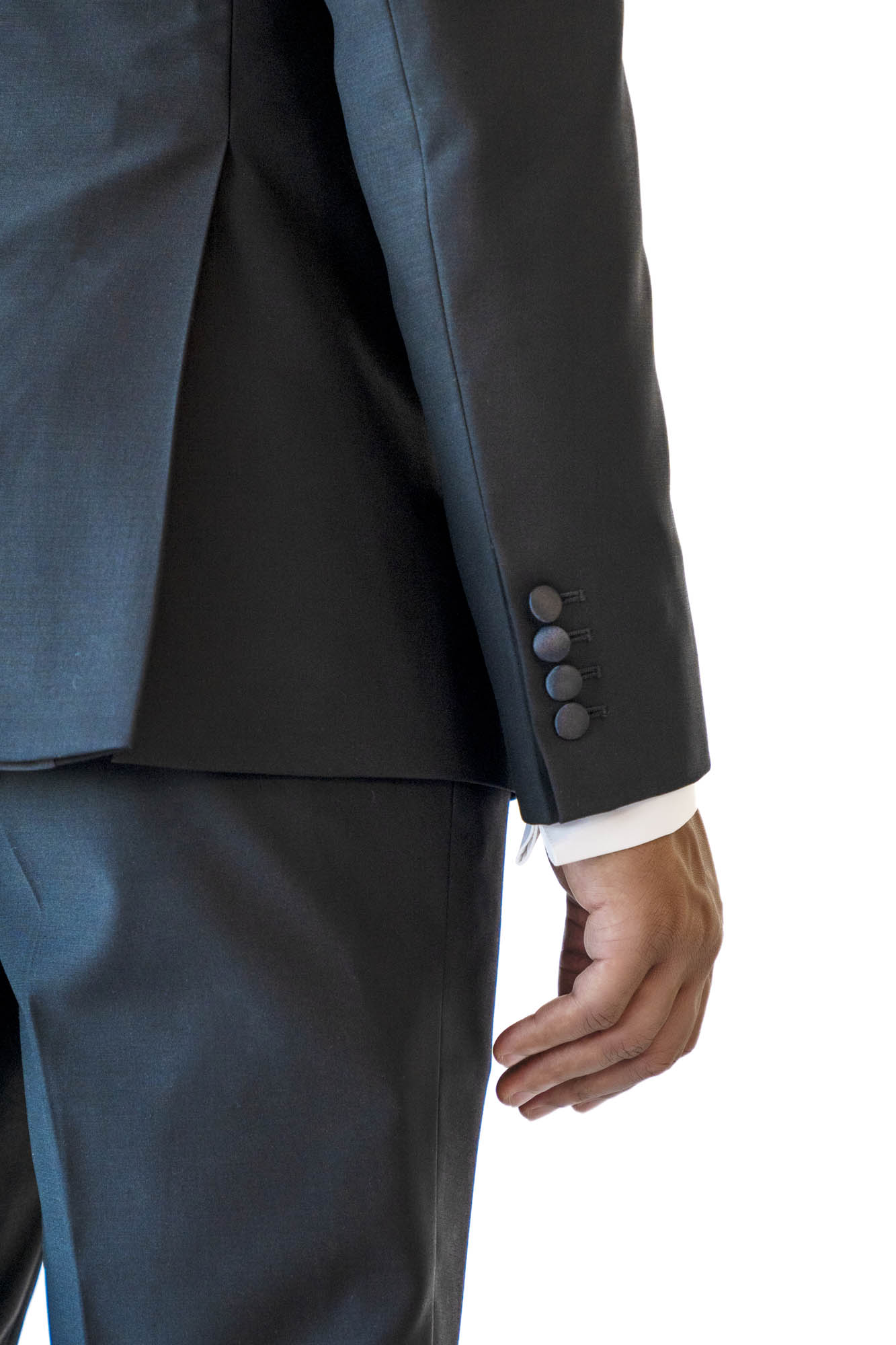 This handsome Super Black Tuxedo comes in an unparalleled deep hue. Fixed with lightly padded shoulders, a single silk-covered button, silk-lined straight pockets and a slightly curved silk-covered peak lapel. Its comfort and style makes it a must have!