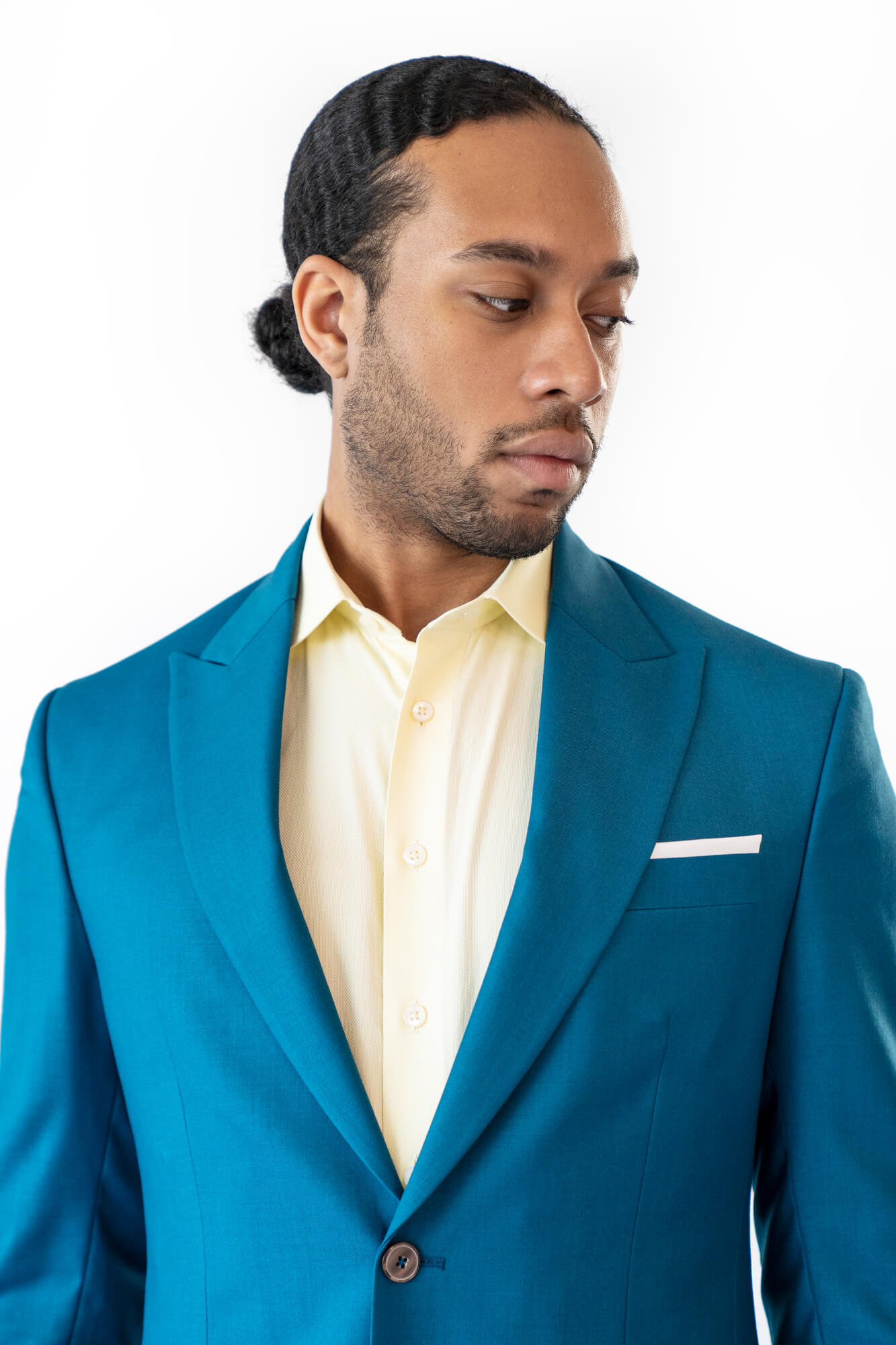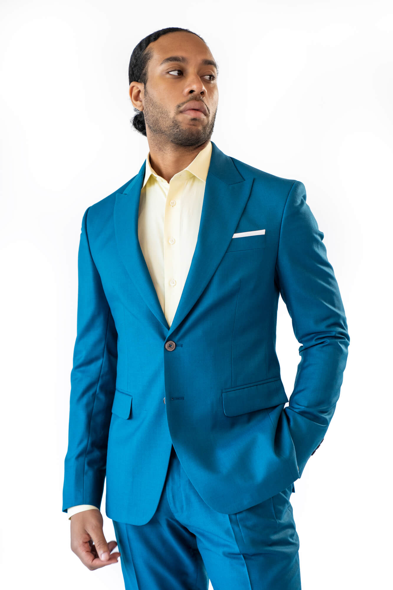 A refined seasonal standout that’s fit for any smart occasion. This 2-piece suit is tailored slim, and lightly padded with straight pockets. Perfect suit for when your in the mood to carpe diem.