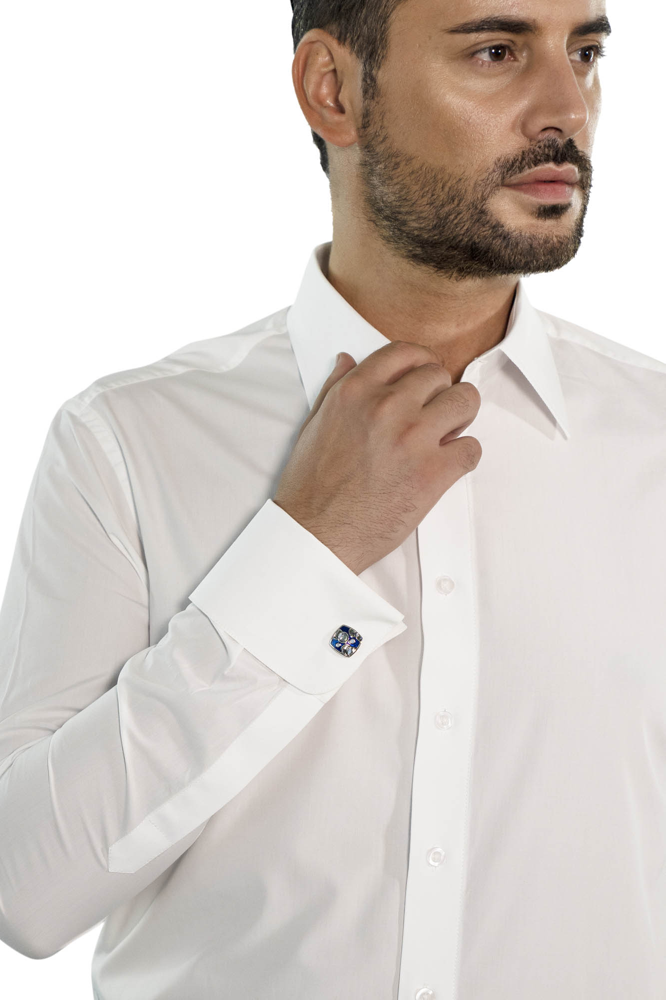 This classic button-up shirt is tailored slim to fit, in breathable organic Indian cotton. It features a classic collar and a double cuff